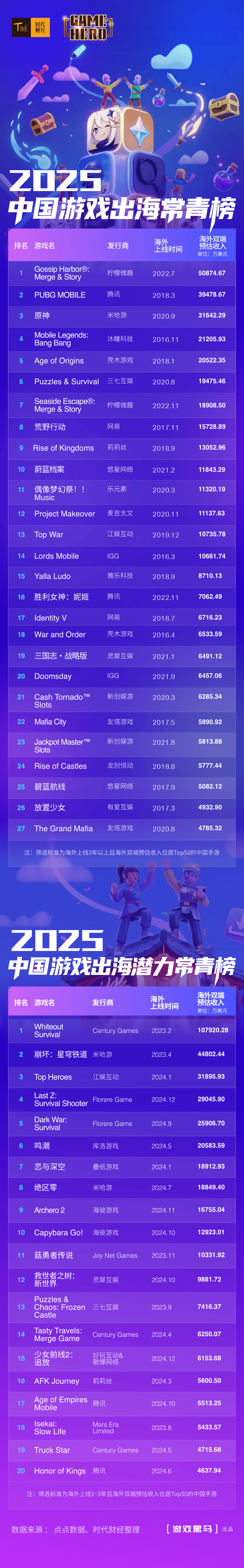 统计并发布《2025年中国逛戏出海潜力常青榜》(下称“《出海潜力常青榜》”)。